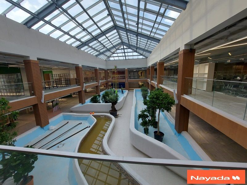 Проект Astana Motors отличный пример того, как с успехом получился качественный дизайн с естественной инсталляцией помещений.